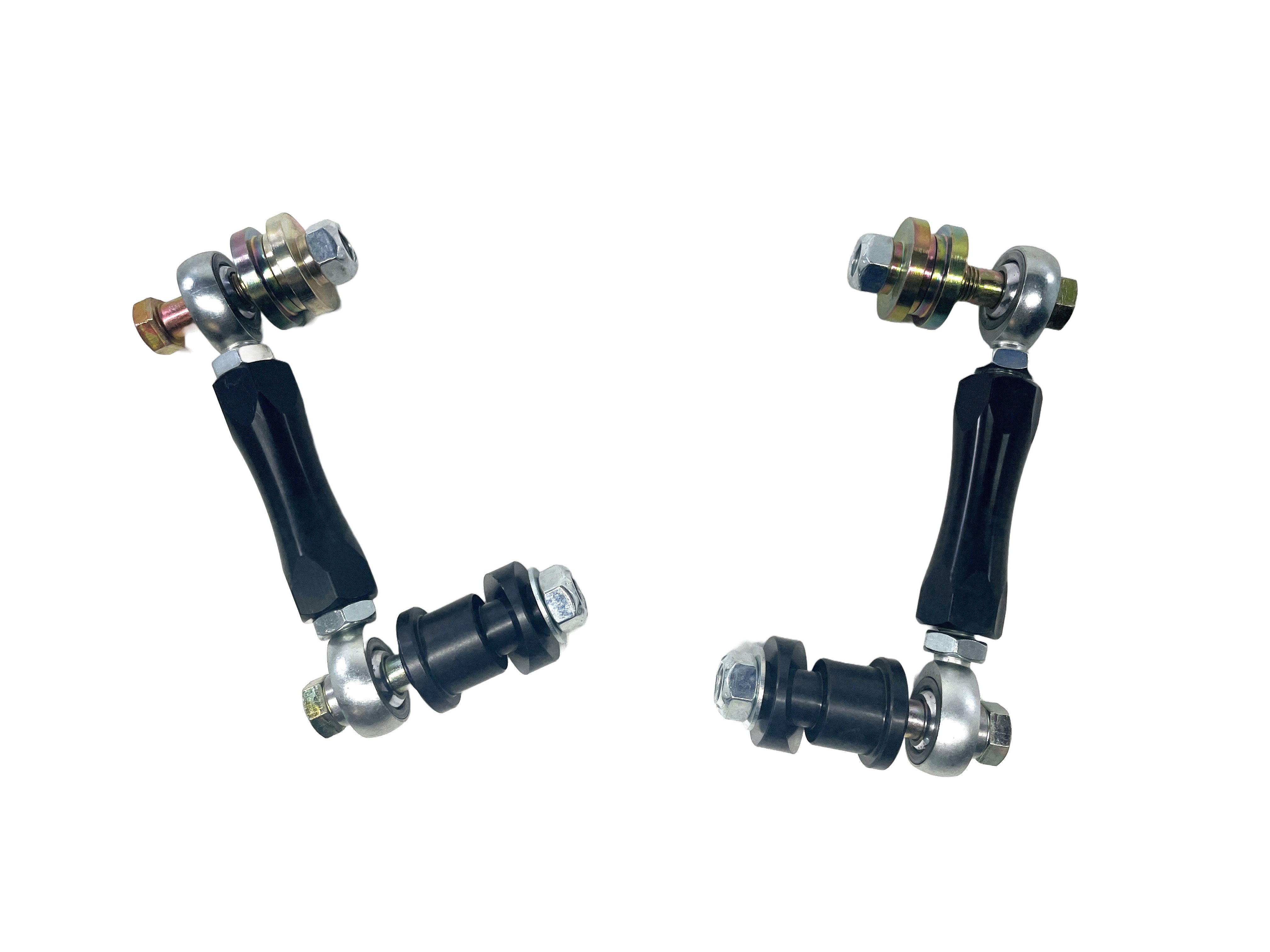 Remove those deflecting rubber or even poly bushings for solid mount bushings with rod end endlinks. We've designed the lower control arm sway bar bushing out of 6061-T6 aluminum and hit it with a black anodize. We also designed solid steel bushings with built in high misalignment washers for ends of a factory sway bar. We then pair our 2024 CF hex aluminum rod end adapters with FK Bearing rod ends to give you a complete bolt-on kit to go with our sway bar relocation kit. This item is sold separately with or without the relocation kit b/c C4 suspension is used in a lot of other cars.