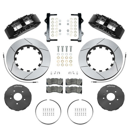 SX6R calipers were designed for the specific purpose of providing high capacity braking with large diameter rotors for extreme duty and race vehicles. It is the largest dual purpose caliper Wilwood has produced, providing big brake performance for show and dual purpose street and track vehicles. Offering additional enhanced braking with wheel and tire upgrades. Kits listed for specific vehicles are fully compatible with OE master cylinder output and ABS function. Directional staggered vane 15.00”rotors provide maximum cooling for sustained high heat durability.