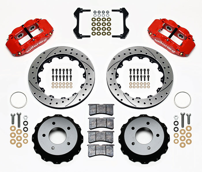 Forged Narrow Superlite 4R four piston calipers are combined with BP-10 compound pads and 13” rotors in this group of big brake kits for custom high performance street and show machines. This group of specialized kits for cars, trucks, and SUV’s retain full use of the OE parking brake, master cylinder output, and ABS where used. FNSL4R rear kits provide complimentary style and performance with 13” and larger front brake upgrades in conjunction with wheel, tire, and suspension upgrades. Optional caliper finishes and rotor designs enable the builder to match style and performance on all applications.