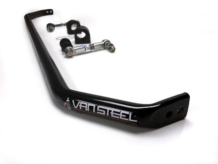 What’s unique about our bar is that is adjustable. We have 2 holes on each side of the bar to increase or decrease the stiffness of the bar. We also do not use traditional sway bar bushings. Van Steel is using premium FK Bearing rod ends for the end links and 6061-T6 aluminum adjuster sleeves and aluminum lower bushing for the lower control arm. Sway bar will come complete with Energy Suspension bushings and the bar is powder coated black.