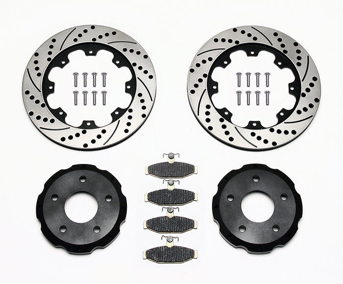 ProMatrix Rotor Kits can offer measurable brake performance improvements to racers and enthusiasts using the OE factory brake calipers. These Rotor Kits are two piece rotor and hat construction and offered in GT slotted or SRP dilled and slotted black e-coat rotors. The ProMatrix brake pads provided in the kit are OE replacement brake pads