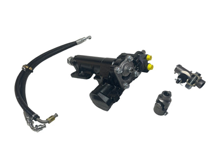 The kit includes power steering conversion box, power steering hoses, drag link adapter and steering universal joint. All major components needed for complete power steering conversion are included in this kit. The power steering box is built and checked in the USA from worldwide sourced components for smooth performance. This conversion restores or improves your Corvette power steering operation for comfortable driving. The kit includes 3 year warranty coverage on major components for protection and peace of mind.
