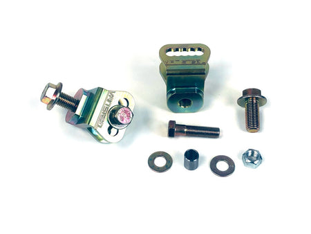 Also included in the kit are (2) T6 Aluminum shims to space the sway bar back for additional clearance. The shims come in a black anodized finish as well as (2) M12 Flange Head bolts for the upper sway bar mount cradle hole.