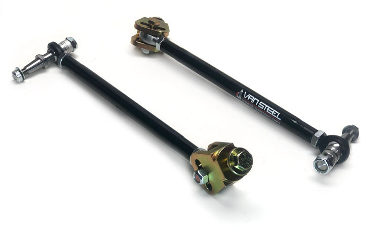 The Van Steel C5 & C6 TMK (Toe Mount Kits) will increase stability and response by eliminating the factory toe rods. Our toe rod kit provides an increased range of rear toe adjustment and has a 5 hole adjustable inboard pivot mount that is offset for the C5 (1.125") to clear cars with inverted shock coilovers making this a must have for C5's. C6 mounts are not offset as they have ample clearance for coilovers. Our inboard mount is a fully machined from a piece of 4140 that later gets a zinc coating and is NOT WELDED. The 5 hole mount lets you adjust for bump steer as well. Our tubes are DOM tubes that are swedged on the ends for extra strength and come with a black powder coat finish.